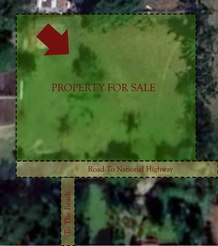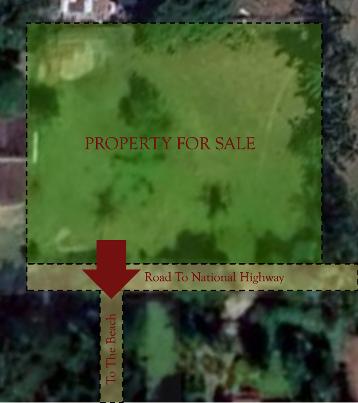 Conveniently located just 500 meters (546.81 yards) from the national highway, the property is easily accessible via a public road with secured right of way. A unique bonus is its 1.6-meter (5.249 feet) wide legal access to the beach, offering future owners a private path to the coastline — perfect for peaceful walks, swimming, or watching the sunset.
